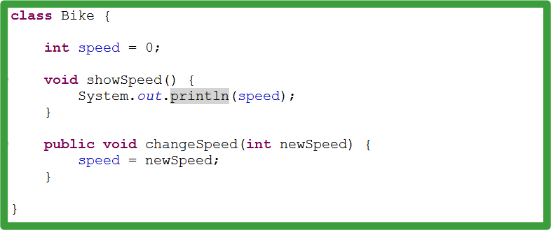 public void changeSpeed(Bike bike,int newSpeed) { //Bike bike.int newSpeed是形参