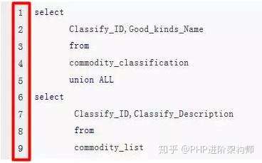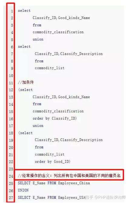 1、UNION 结果集中的列名总是等于第一个 SELECT 语句中的列名