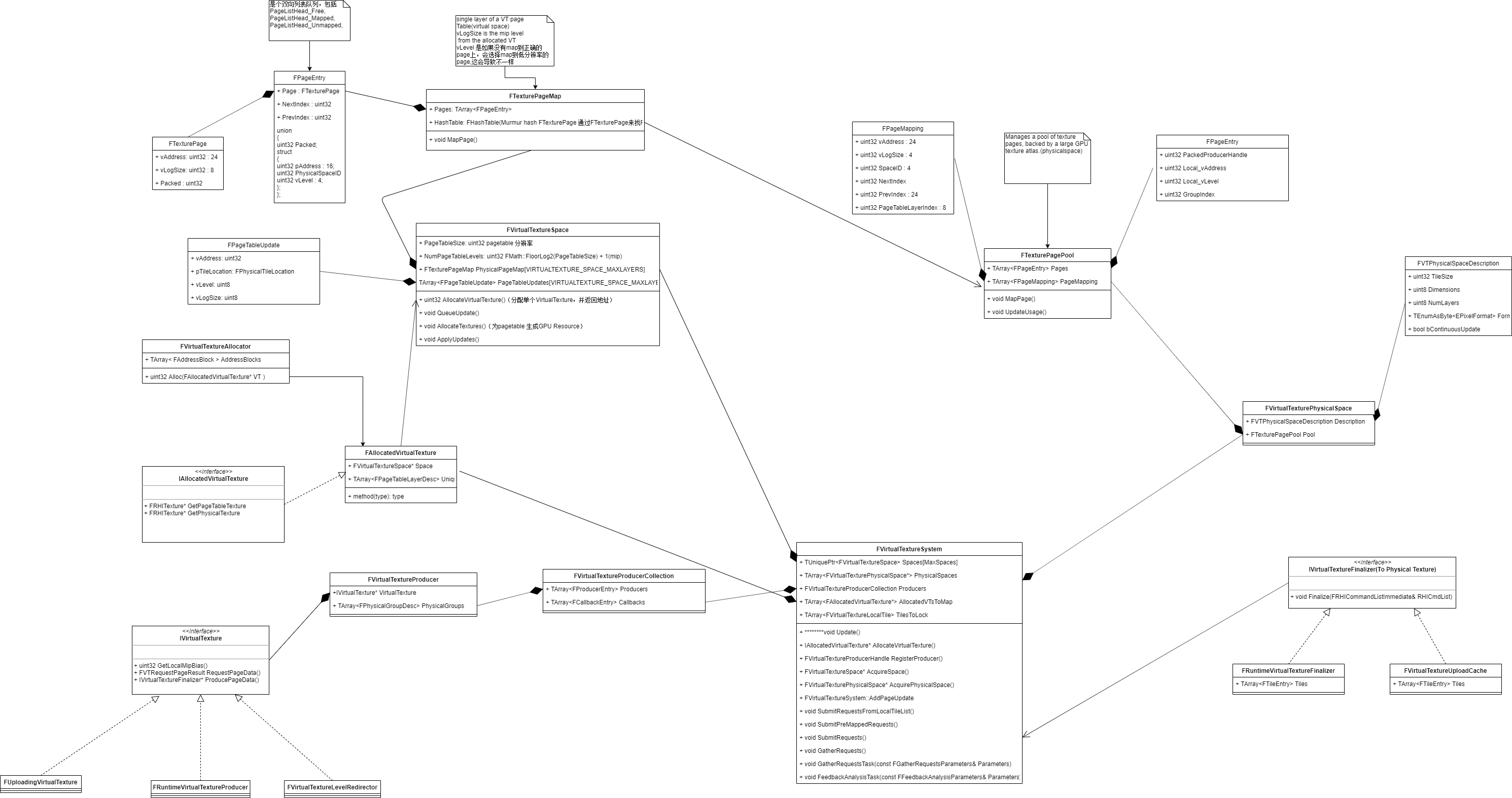 FVirtualTexturePhysicalSpace主要内容是Physical Texture的GPU资源和FTexturePagePool。本身的逻辑比较少,多数逻辑在FTexturePagePool中。
