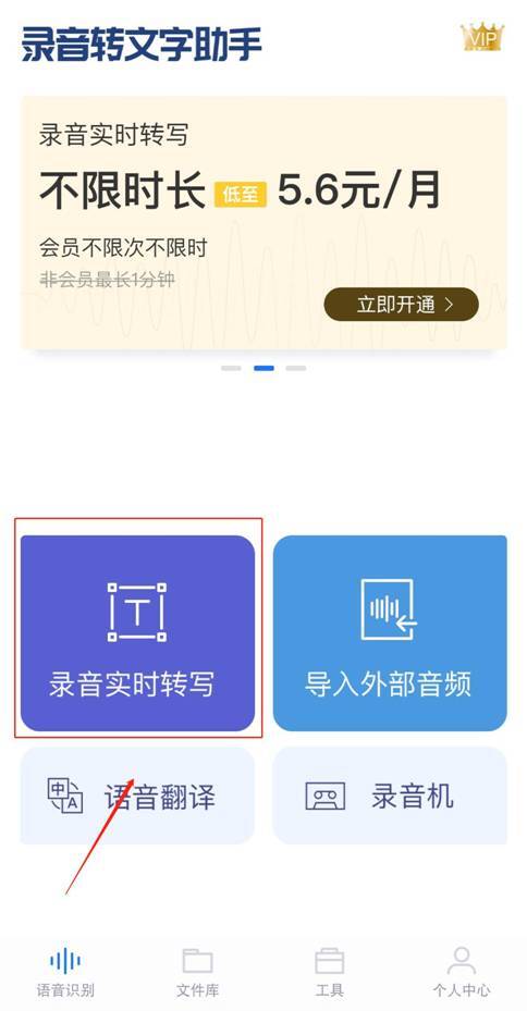 我们要想把语音直接转换成文字来使用的话,可以选择其中的【录音实时转写】功能,进入语音录制页面。
