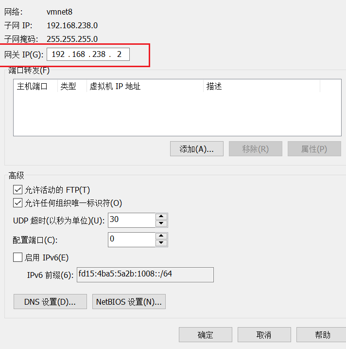 虚拟机上面的这个网关很重要,一定要与配置的网关一致。
