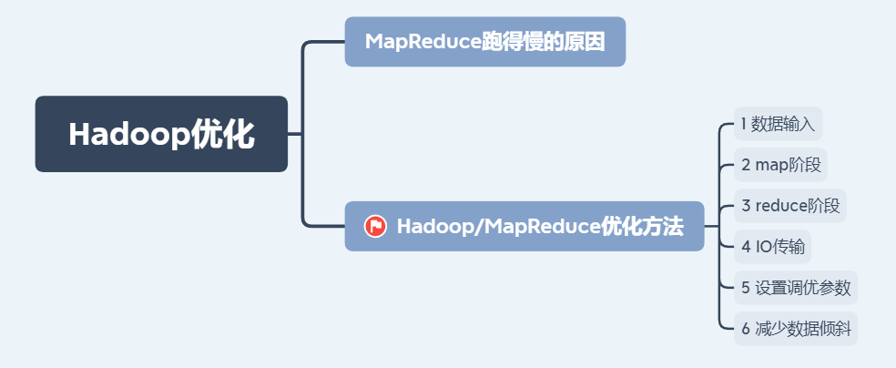 MapReduce优化方法主要从六个方面考虑:数据输入、Map阶段、Reduce阶段、IO传输、数据倾斜问题和常用的调优参数。