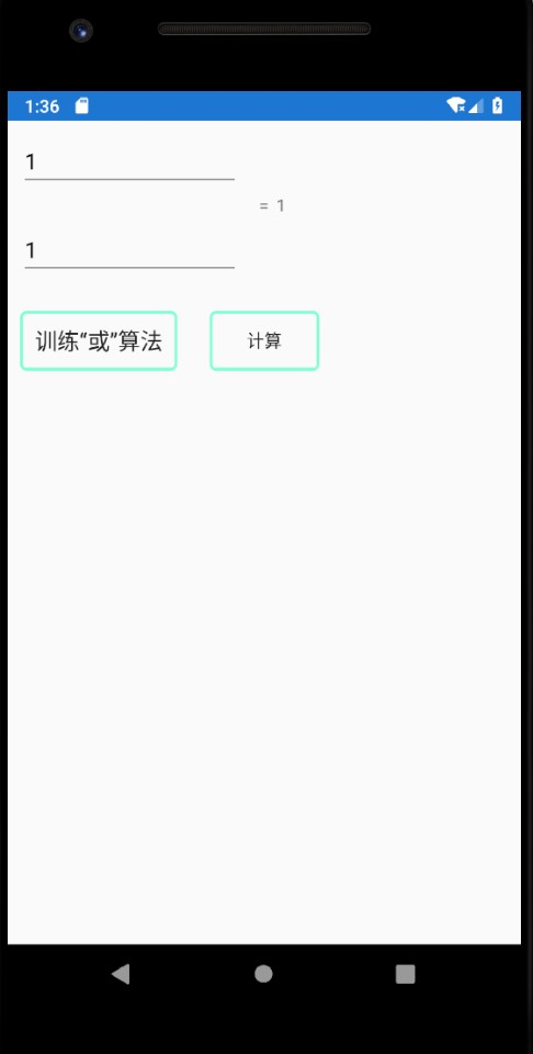 其实此时一个模型就完成了,这个模型还是真能跑的模型,但是还缺少一步就是训练。训练是什么,虽然我有一个模型可以用来计算 或 计算,但是这个模型还没学会 或 是怎么算的,需要一个训练方法让他学会。最简单的训练方法就是每次输入,然后看这个模型的输出,如果输出和正确答案不同,那么让这个模型重新初始化,也就是让每个参数随意给一个