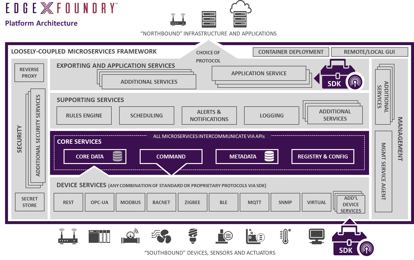本机编排意味着无法很好处理设备单点故障,即使EdgeX Foundry最常见的部署方式也是把微服务的核心容器实例部署在一台设备上。