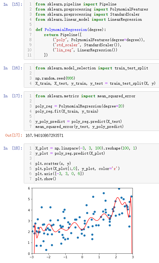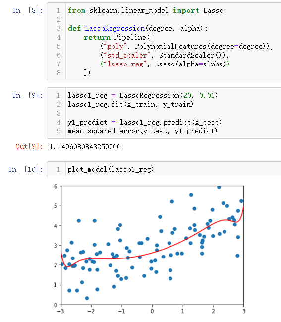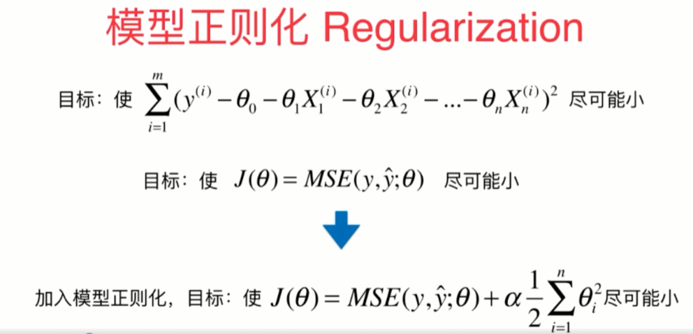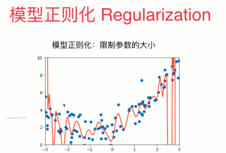多项式回归过拟合的情况,有一些系数会很大,模型正则化就是限制其不要太大