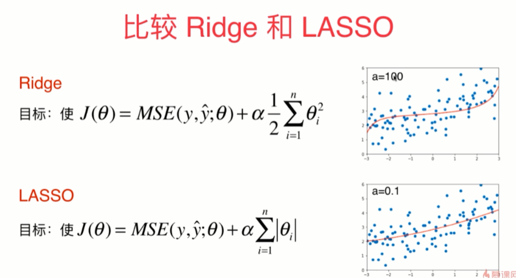 LASSO更倾向于直线,Ridge更倾向于曲线,