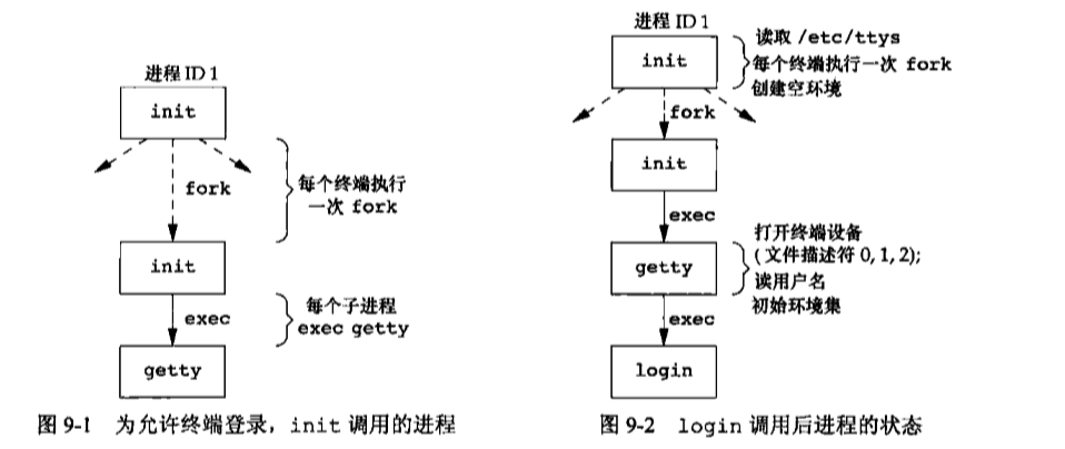 init进程知道那些终端设备可用来登录,并且为每个设备生成一个getty进程