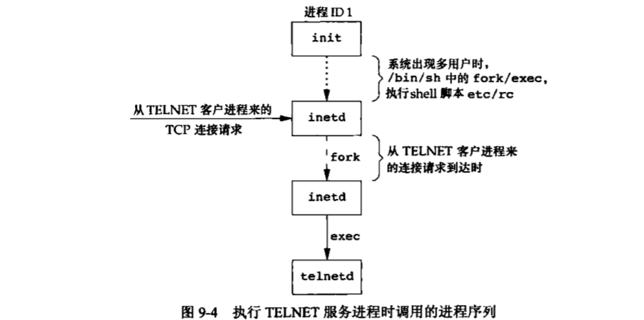 inetd等待TCP/IP连接请求到达主机,当一个连接请求到达时,执行一次fork,然后生成的子进程exec执行适当的程序。