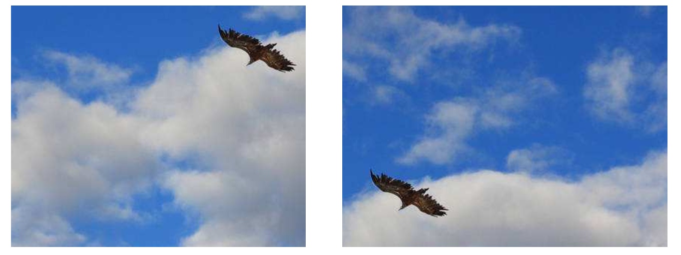 举个例子,在如下左边的图片中,鹰在图片的右上角;在右图中,鹰在图片的左下角。如果我们希望神经网络既能捕捉到左图中的鹰,又能捕捉到右图中的鹰,我们就希望神经网络能够根据每个样本的特点,对每个样本的不同部位,施加不同的权重。