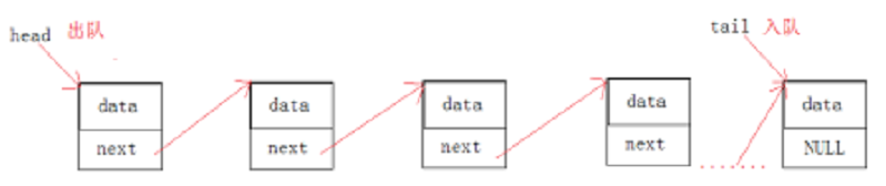 思路:就是用 head 始终指向头结点,tail 始终指向尾结点,静态的模板变量,单链表实现,入队从尾 tail,出队从头 head;