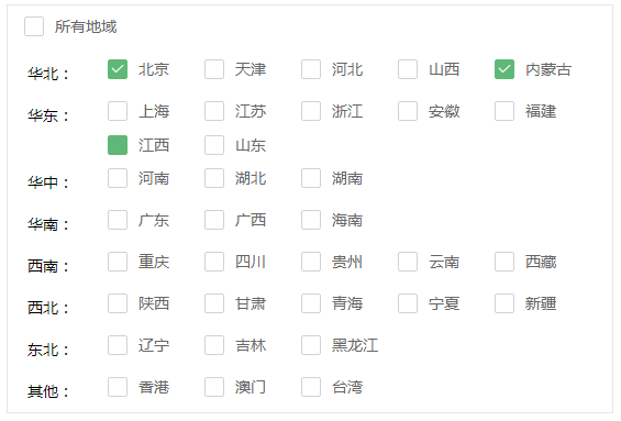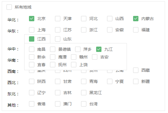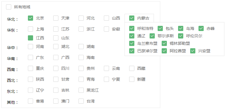 自己开发的一个系统使用的是layui前端框架,需要实现中国省市的多选,就实现了一个基于layui的省市复选框组件,分享给大家。