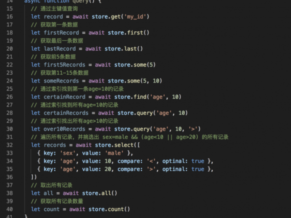 HelloIndexedDB具备丰富的查询api,让开发者可以更方便的找到数据