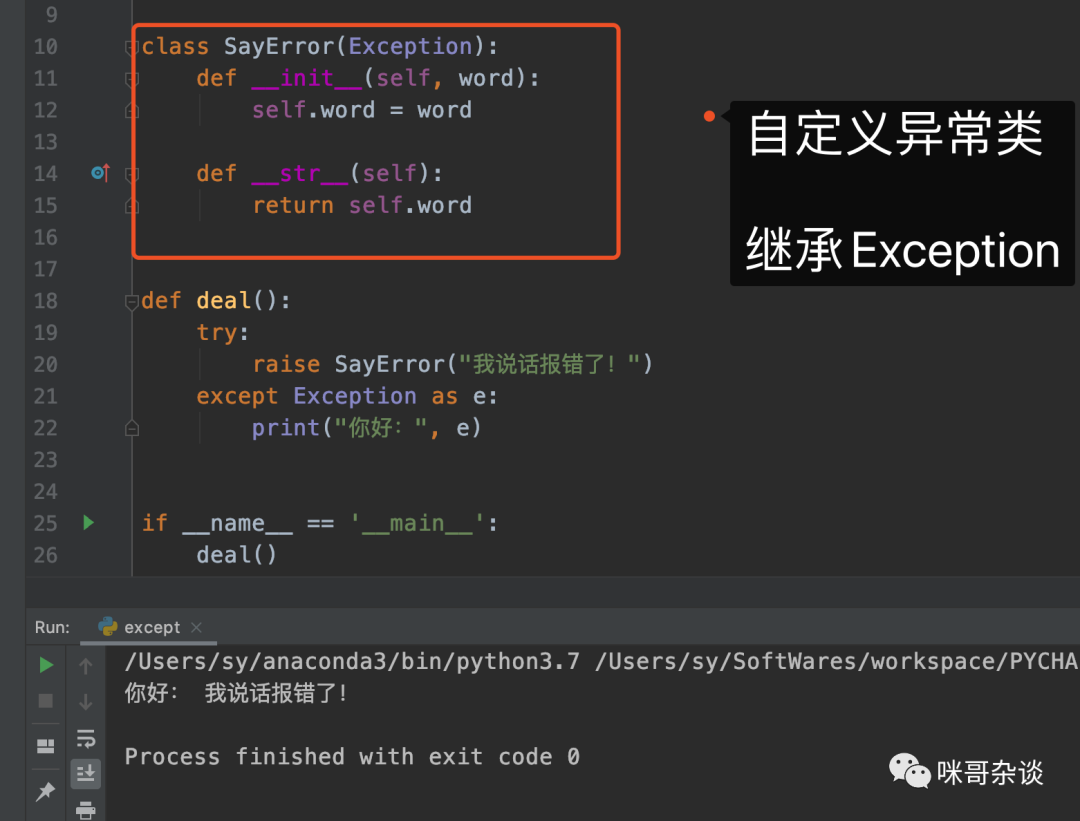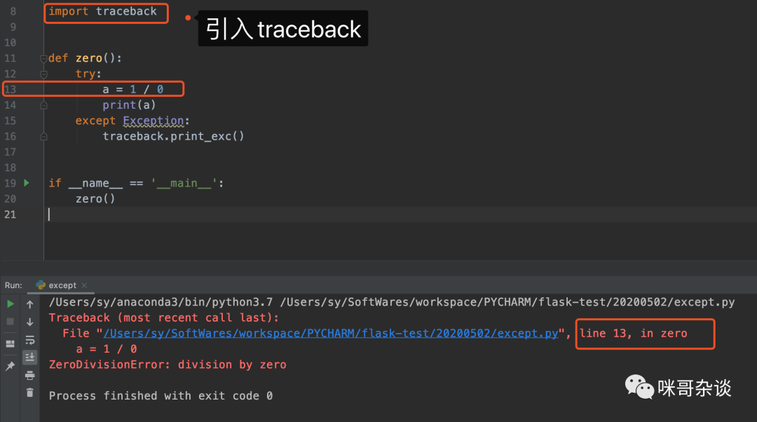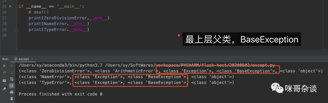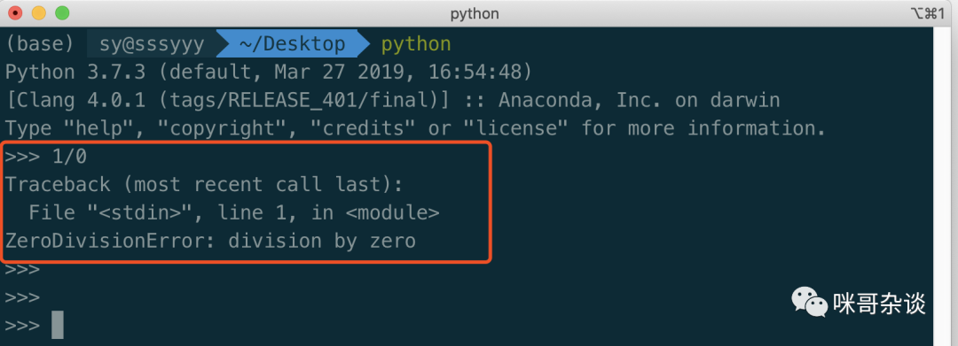 这里留个小问题,你觉得异常和错误有什么区别?看 Python 提示都是XxError(SyntaxError、ZeroDivisionError),为什么不一样?