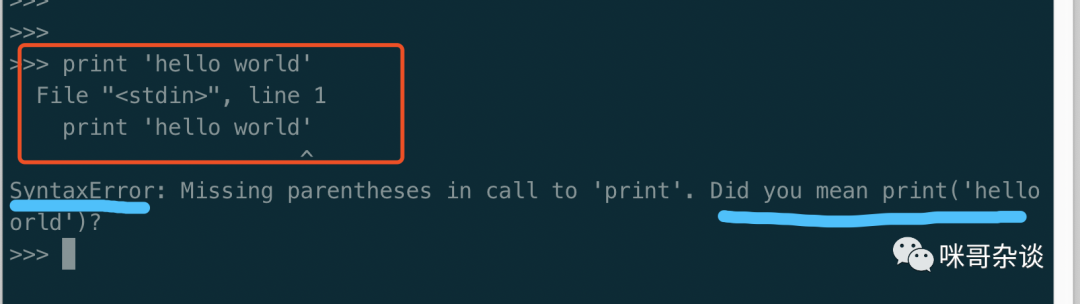 在 Python3 中,print 函数新加了小括号才能进行打印,否则就是语法错误。