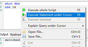 2.use lk(lk是数据库名):光标放在当前行,鼠标点击右键