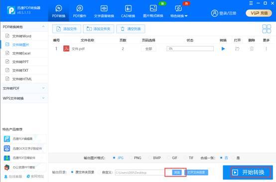 然后在输出目录这里点击浏览,然后设置一个保存图片的路径,单击“开始转换”即可。