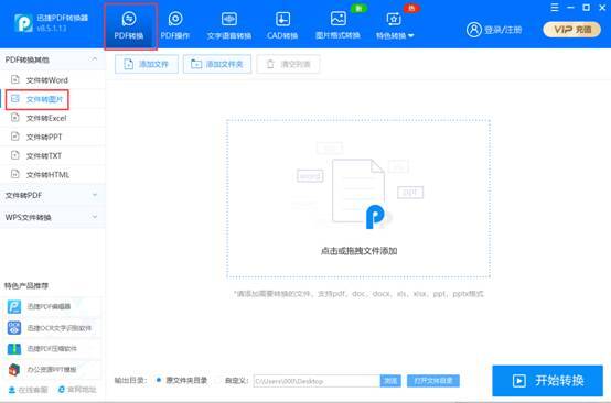 之后看界面左侧的选项,其中有一个“文件转图片”,这个就不是默认的了,需要我们去单击一下。