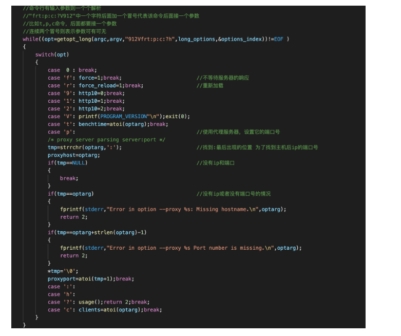 其实这就是传说中的argc argv[],不过程序在此处用到了C语言的getopt_long函数。想要了解如何解析Linux命令行参数,去查getopt_long这个函数