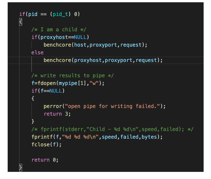 这部分的代码比较简单,子进程通过管道来向父进程返回结果,用变量去统计结果即可。