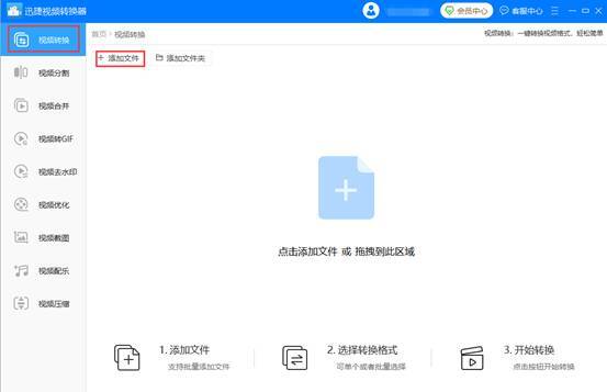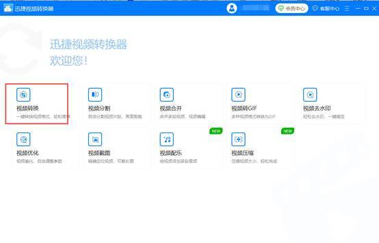 第一步:双击打开迅捷视频转换器,你会看到如下的这个界面,接下来,我们选择第一个,也就是“视频转换”,左键单击一下,进入到下一个界面中。