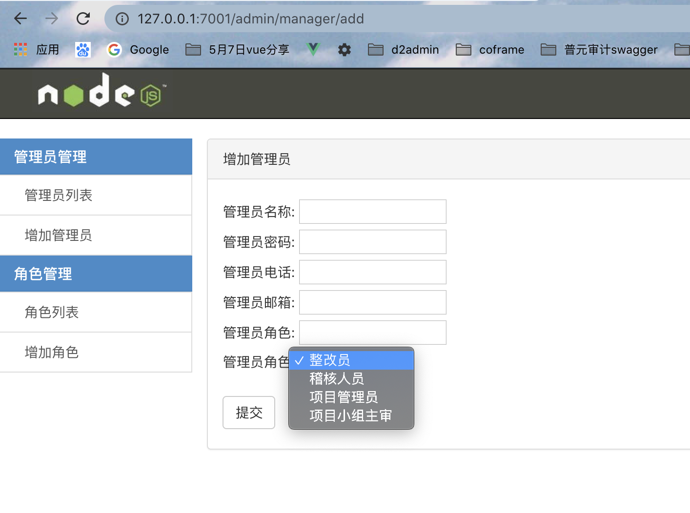 view>manage>add.html 其中管理员角色有一个select标签循环角色列表
