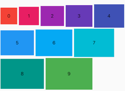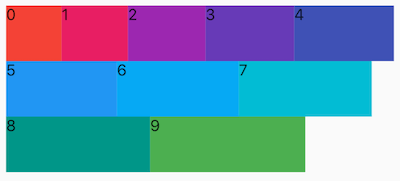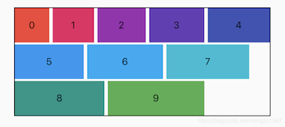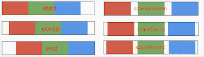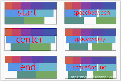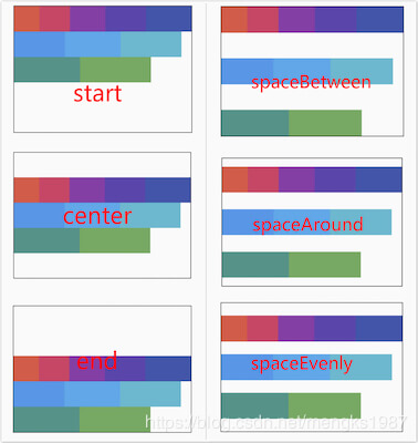 - spaceAround :第一个子控件距开始位置和最后一个子控件距结尾位置是其他子控件间距的一半。