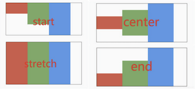 - up :从底部开始,并垂直堆叠到顶部,对齐方式的 start 在底部,end 在顶部。