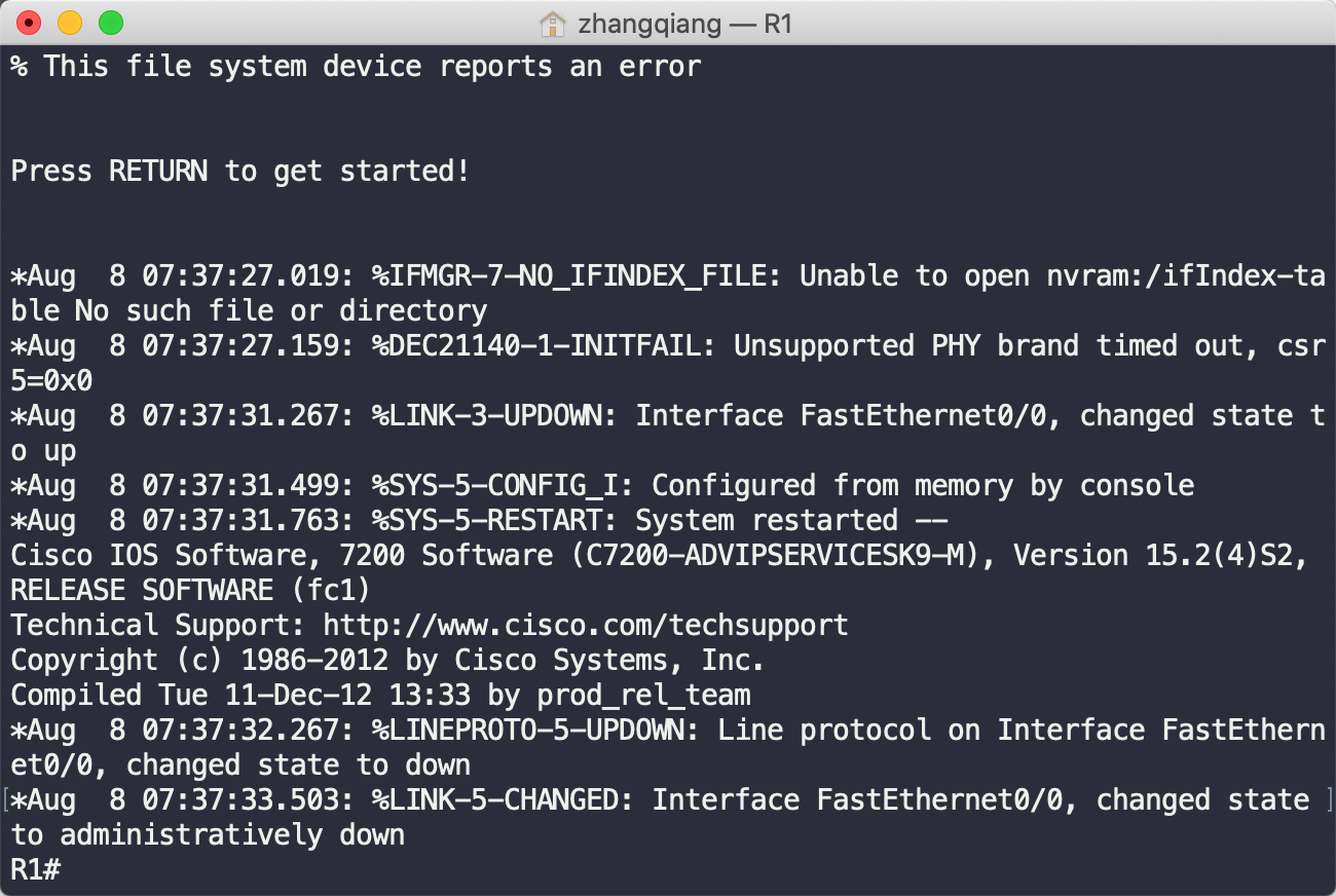 R1上右键console,进入终端管理界面
