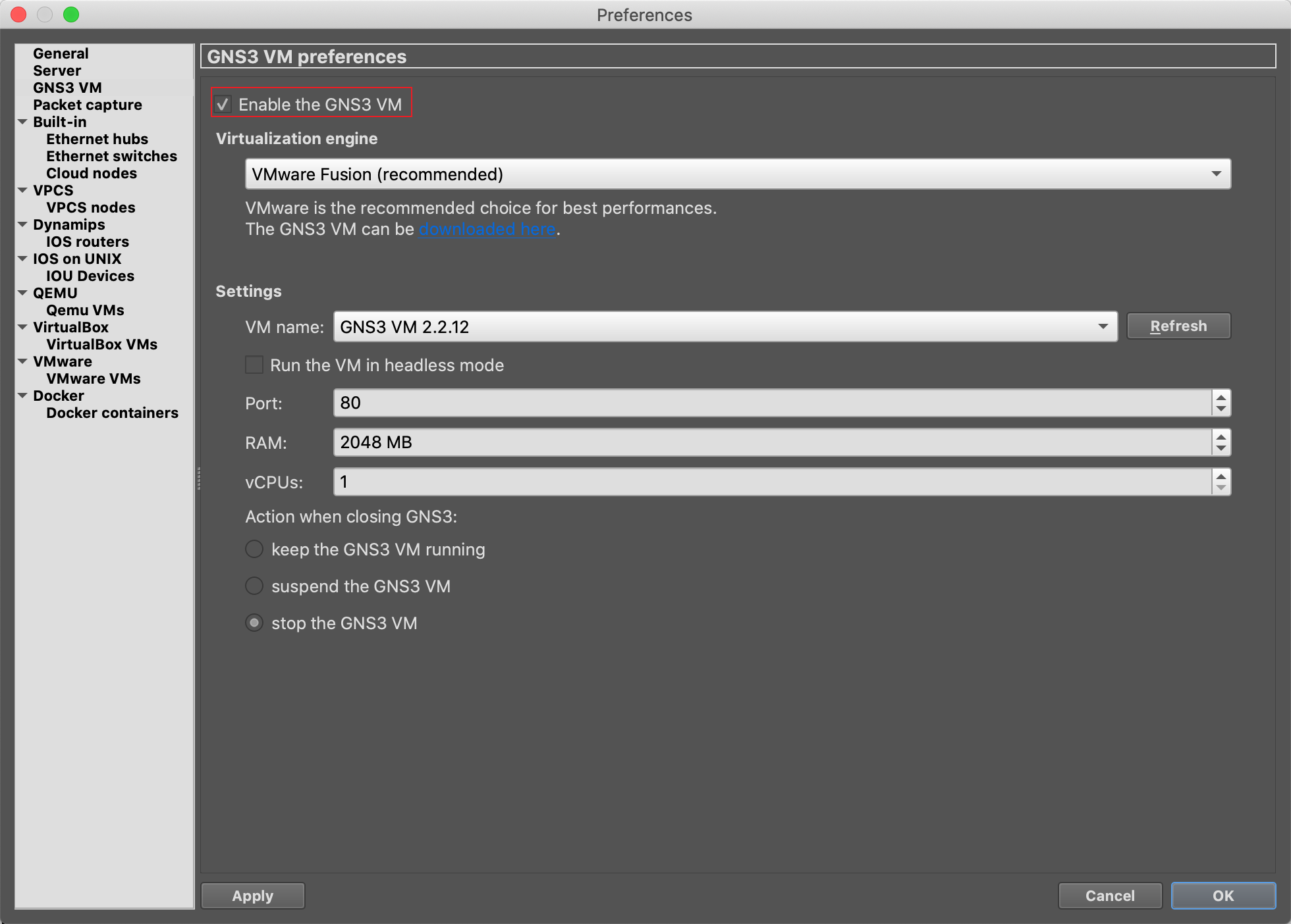 GNS3 VM