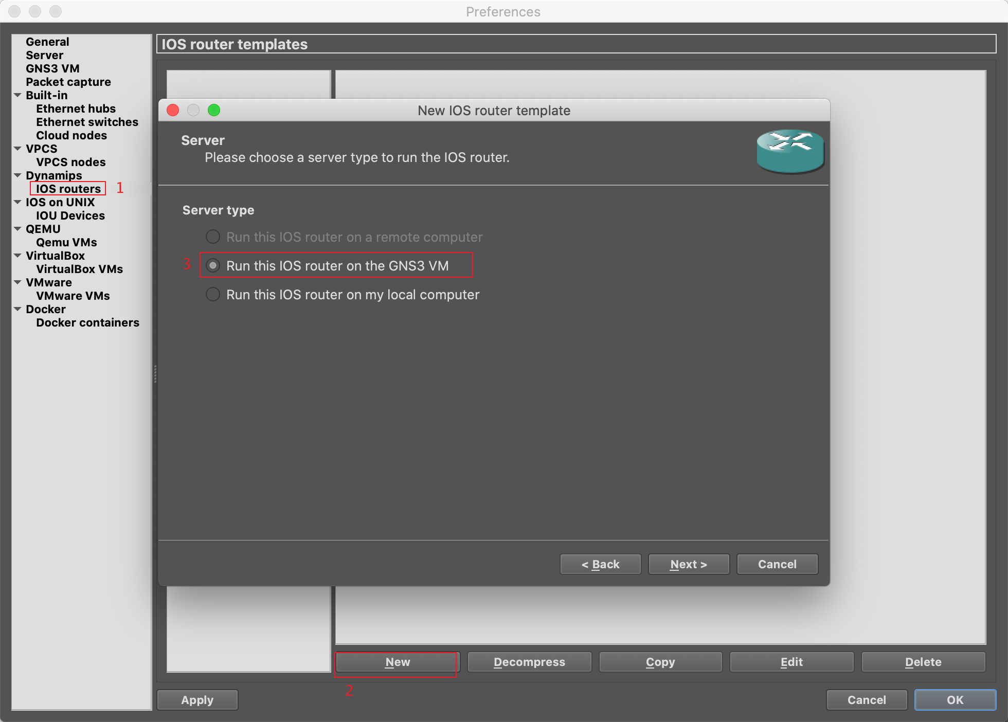 打开GNS3,第一次的话会有下面弹窗,选中第一个。