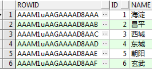 查询语句: select rowID,t.* from T_AREA t