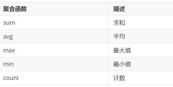 聚合函数:通过提供函数,将查询结果处理成一行一列数据。