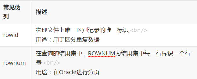 伪列是oracle中独有的,伪列也是真实存在的列,用于查询操作,不能增删改操作。