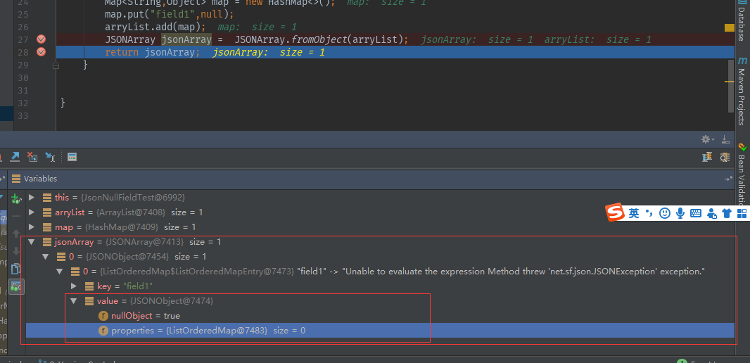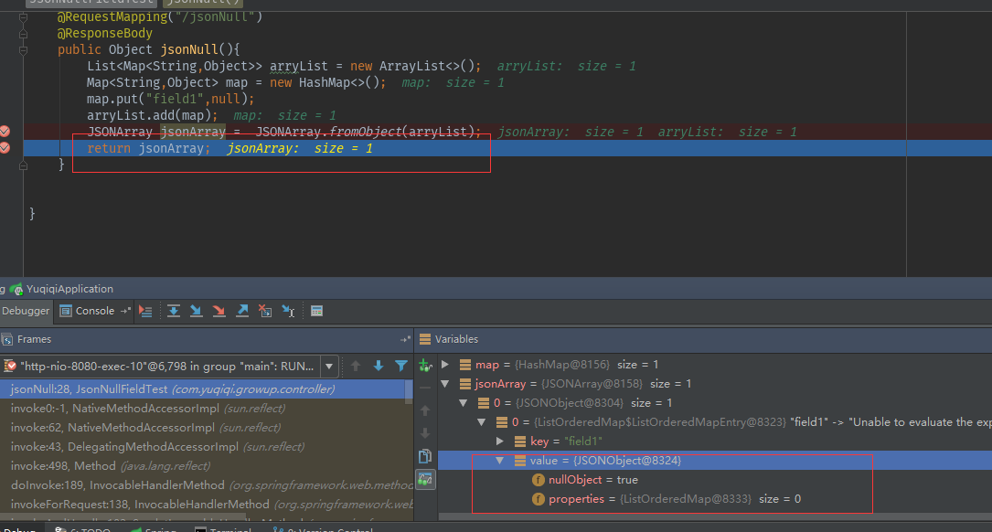 下面是第7步中的执行步骤 此处将null 替换成了JSONNull对象, JSONNull.getInstance() JSONNull对象