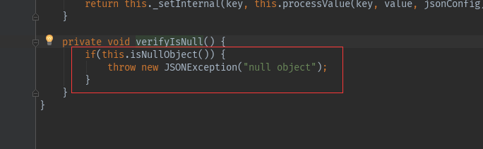 还记得那个构造函数么,那个true么,最后返回的JSONObject 对象isNullObject 是true ,所以在这里抛出了异常,真的是饶了一大圈,最终回到了这里