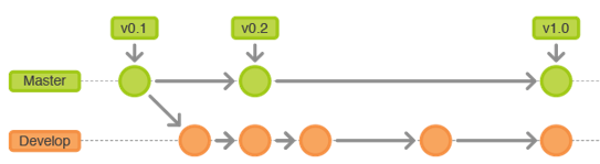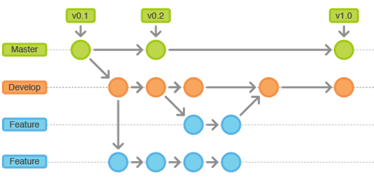 每个新功能位于一个自己的分支,这样可以push到中央仓库以备份和协作。但功能分支不是从master分支上拉出来的新分支,而是使用develop分支作为父分支。当新功能完成时,合并回develop分支。新功能的提交不直接与master交互。