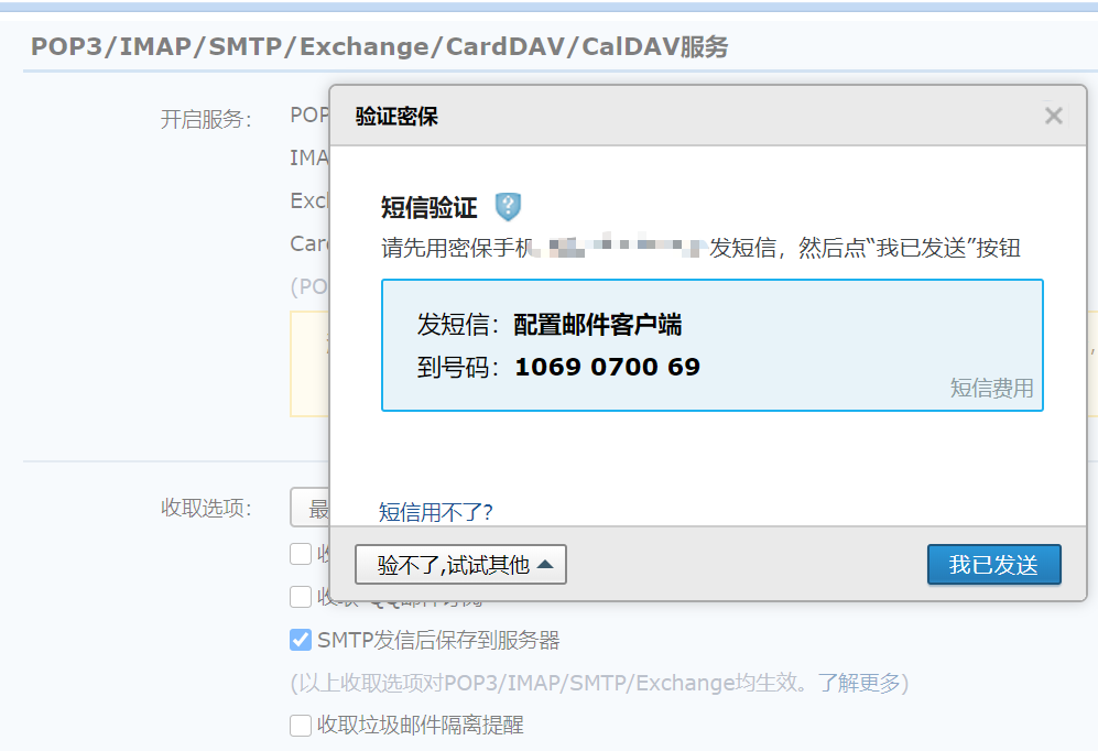 获取qq邮箱授权码, 需要使用手机发送短信