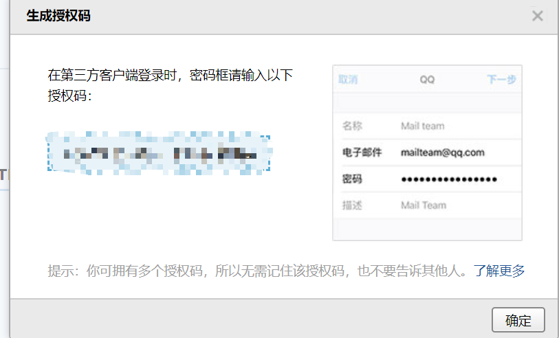 pass: 'xxx' // QQ邮箱需要使用授权码