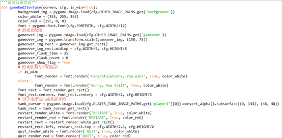 图3.10游戏结束界面代码
