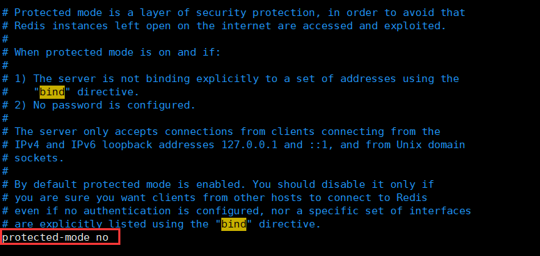 同时关闭Redis的服务保护模式,将protected-mode设置为no。如下: