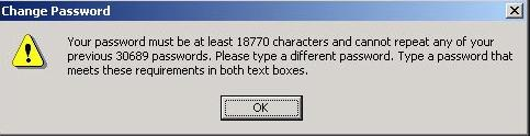 “用户的密码必须至少为18770个字符,并且不能重复以前的30689个密码。请键入不同的密码。请键入符合两个文本框中要求的密码。”