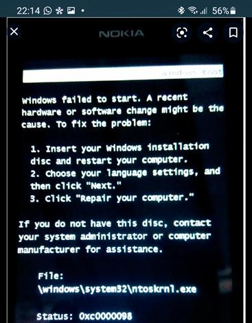 这个错误被发现于诺基亚Lumia920智能手机的微软移动操作系统Windows Phone中,它要求用户“插入Windows安装盘并重启系统”。