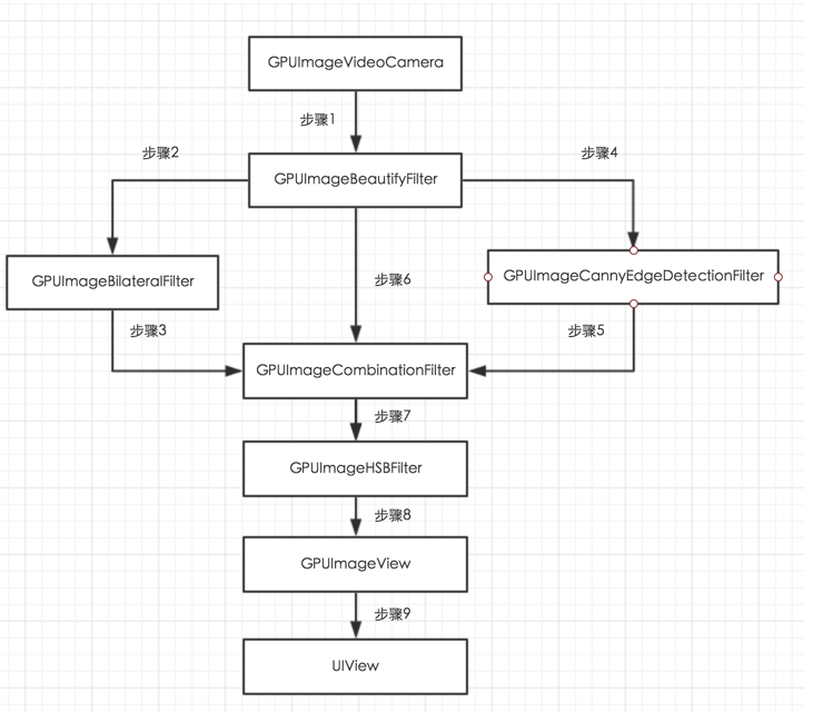 8.设置GPUImage处理链,从数据源 -> 滤镜 -> 最终界面效果;
