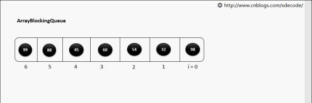 当元素被取出后, 并没有对数组后面的元素位移, 而是更新takeIndex来指向下一个元素.