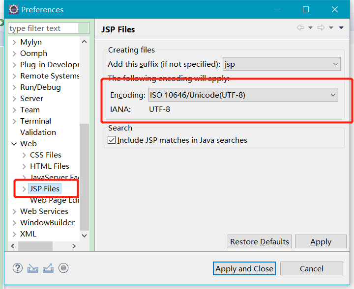 首先,你可以注意到Eclipse为你创建的jsp模板编码都是ISO-8859-1。需要到Preferences中改一下。
