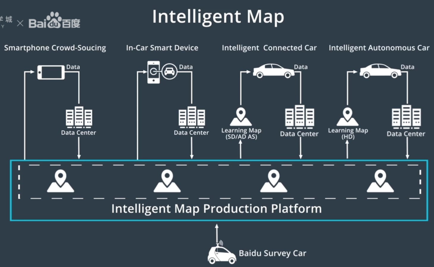在中国,Apollo拥有丰富的高精度地图数据,包括各高速公路的地图绘制,并计划到2020年涵盖中国的所有国道以及许多其他高等级公路。为了方便数据共享,Apollo高精度地图采用了Apollo OpenDRIVE格式,让每个人都能轻松读取相同的地图数据。同时百度开发了一套完善的地图绘制系统,使90%的地图绘制流程实现了自动化。