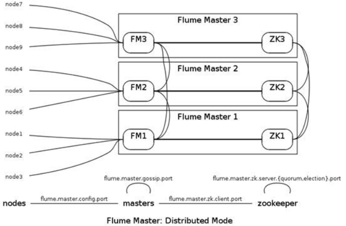 为了保证可扩展性,Flume采用了多Master的方式。为了保证配置数据的一致性,Flume引入了ZooKeeper,用于保存配置数据,ZooKeeper本身可保证配置数据的一致性和高可用,另外,在配置数据发生变化时,ZooKeeper可以通知Flume Master节点。