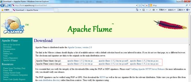 如下图所示下载flume-1.5.2-bin.tar.gz: