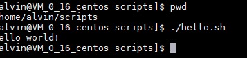 假设,我现在脚本放在 /home/alvin/scripts 目录下,脚本名称是 hello.sh ,运行的结果就是打印一句 hello world 。