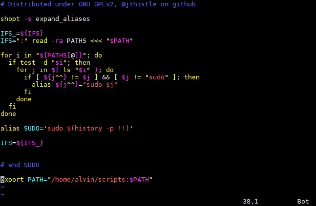 PATH="/usr/local/sbin:/usr/local/bin:/usr/sbin:/usr/bin:/sbin:/bin:/usr/games:/usr/local/games:/home/alvin/scripts"